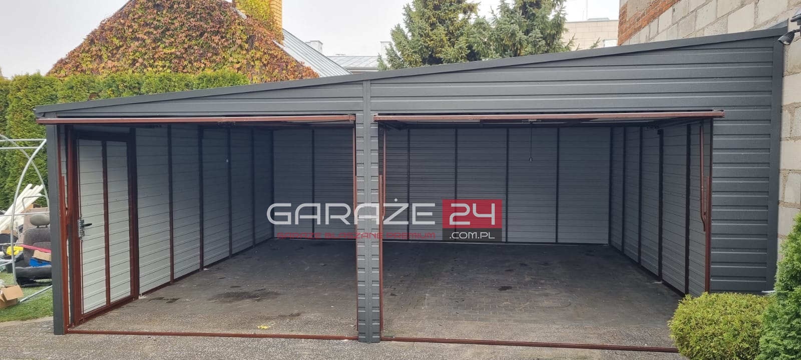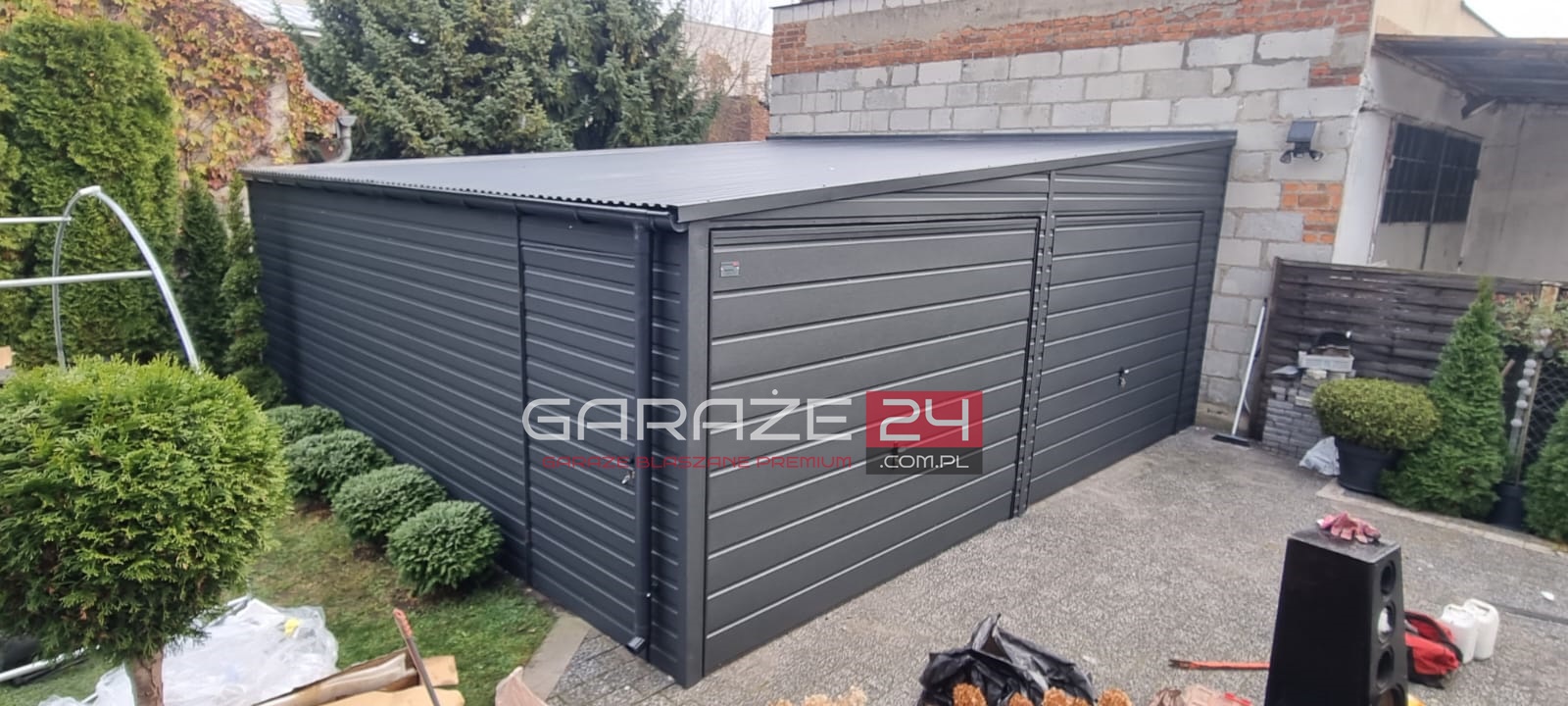 Garaż blaszany 6,5x6m, spad w lewo, grafit mat , filc pod dachem, drzwi , wzmocniony profilem zamkniętym