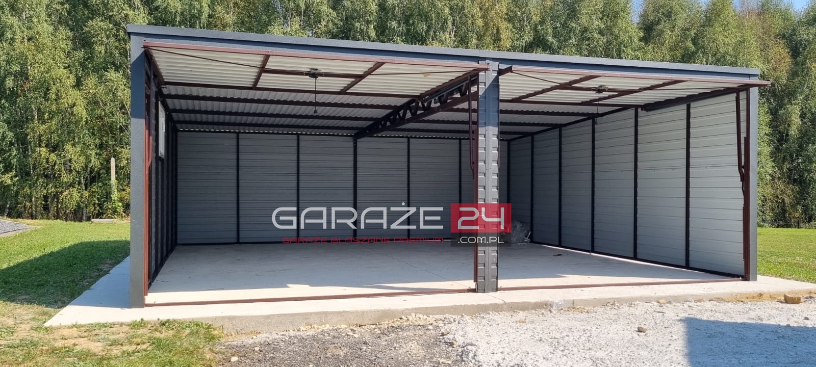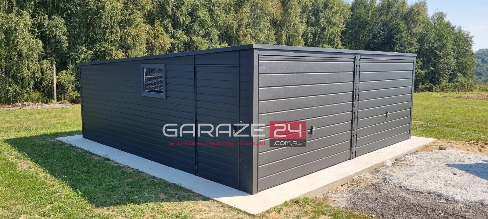 Garaż blaszany PREMIUM 6×5,80m lub 6x6m, grafit mat , drzwi , okno , wzmocniony profilem zamkniętym